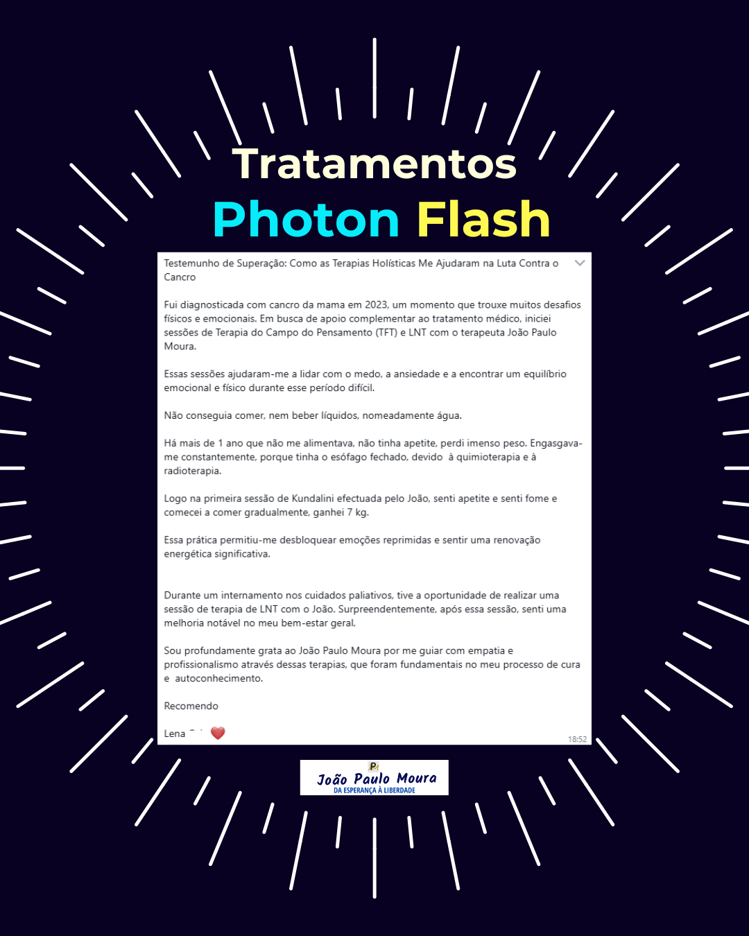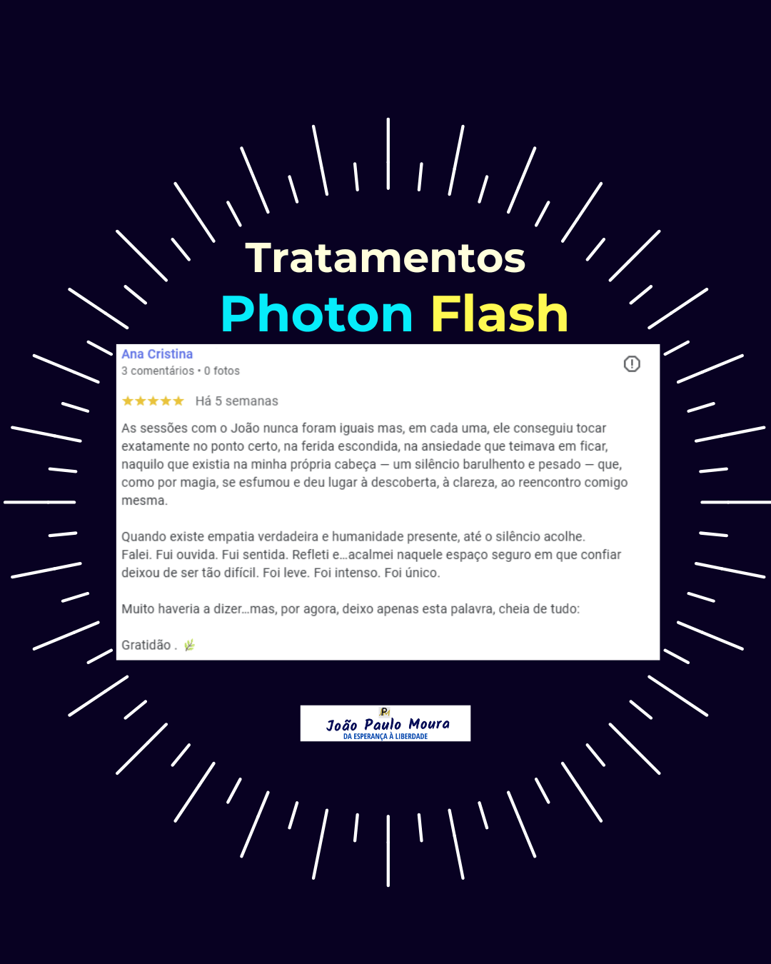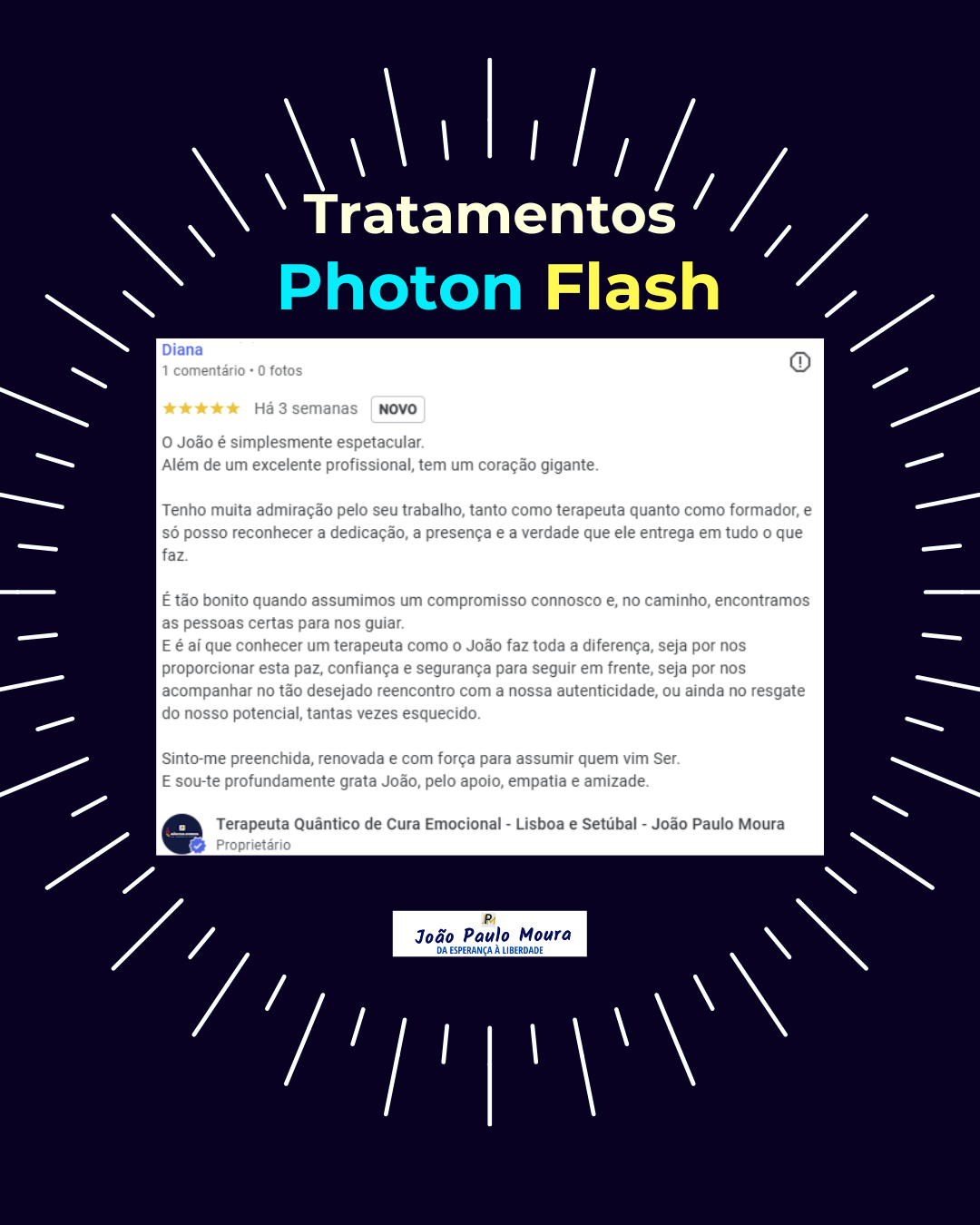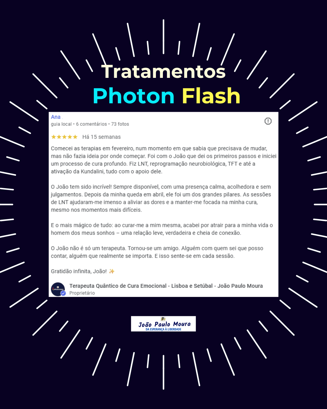 TFT entrou na minha vida recentemente e está a ter um impacto extraordinário. É pelas mãos do João Moura que estou a beneficiar dos poderosos impactos de TFT , com resultados imediatos na minha saúde. Maior tranquilidade, serenidade e paz interior sinto após aplicação das técnicas de TFT. Melhorias significativas no meu estado clínico tem sido possível graças ao acompanhamento do extraordinário João Moura. Além de ser um profissional de excelência, o João Moura é uma pessoa de grande generosidade e sempre atencioso com quem ajuda. Sinto-me imensamente grata pela benção de contar com o excelente profissional João Moura, que me permitiu conhecer o poder de TFT que veio transformar positivamente a minha vida. Para quem pretende conquistar paz interior, serenidade, tranquilidade, desbloqueios emocionais, recomendo o maravilhoso acompanhamento do João Moura.